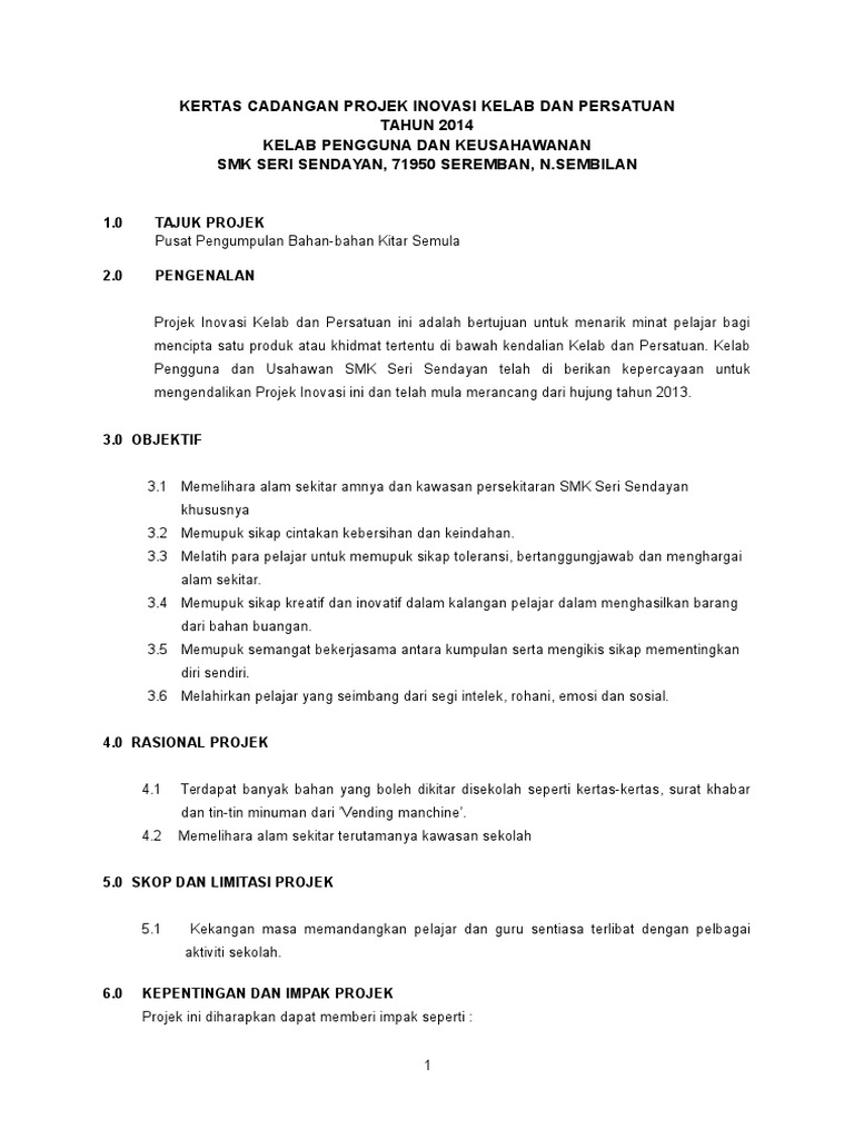 Kertas Cadangan Projek Inovasi Kelab Dan Persatuan Pdf